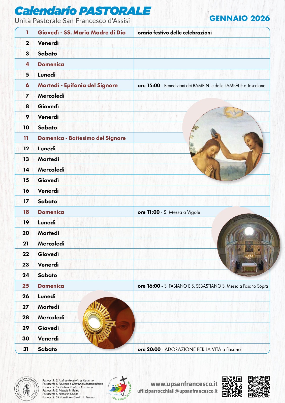 E' stato pubblicato il calendario per l'anno pastorale 2023/2024