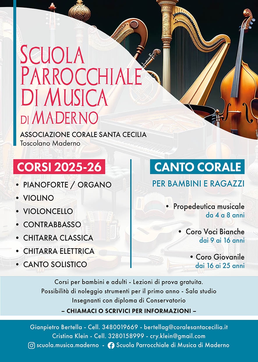 Novità 2024, grest musicale organizzato dalla Scuola Parrocchiale di Musica. Info e iscrizioni in locandina.